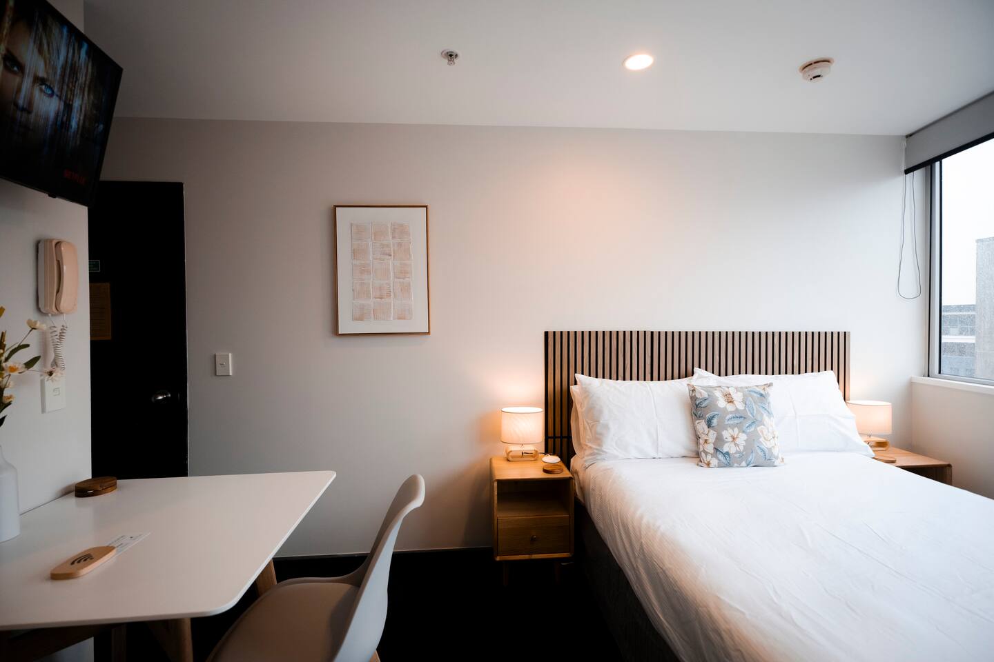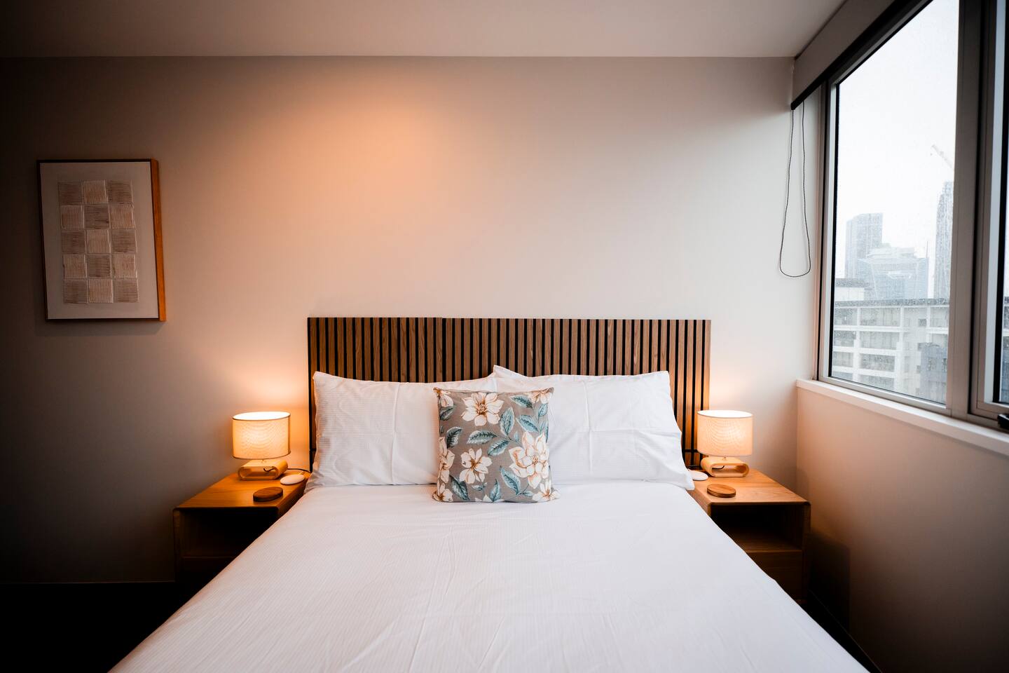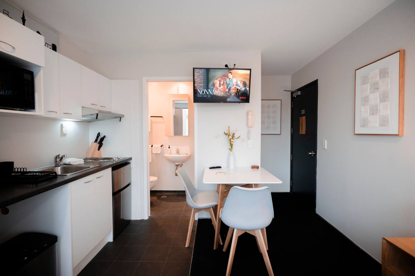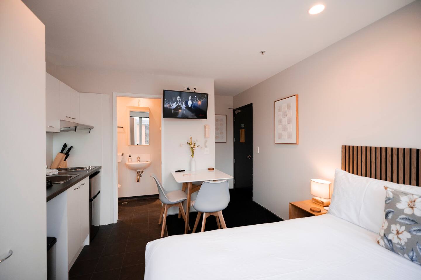 Located a short walk to Queen Street, Auckland Universities and Auckland Hospital, this is a great base if you're visiting Auckland and want to be close to transport, shopping & restaurants. A complimentary, secure parking space in the basement is included during your stay. In short, the apartment has; * City and harbour views looking out to Waiheke Island from your window * Unlimited fast wifi internet * Unlimited on demand movies and TV shows from Netflix * 32" Smart TV * Air Purifier (hot and cold) * Fully furnished kitchenette including DeLonghi appliances, fridge/freezer and microwave/oven * Bistro dining table * Shower * Premium Egyptian cotton bathroom towels * Bed linen and duvets * Outdoor swimming pool access * Highly secure building; swipe card required for access to the lobby and lifts. BEDROOM Is cosy with a comfy double sized bed with luxurious Egyptian cotton sheets and linen duvet. There's a wardrobe where you'll find lots of hanging space for your clothes and the ironing board & iron. Each bedside table has a wireless phone charger. Complementary laundry powder, milk, premium tea & coffee are provided.
