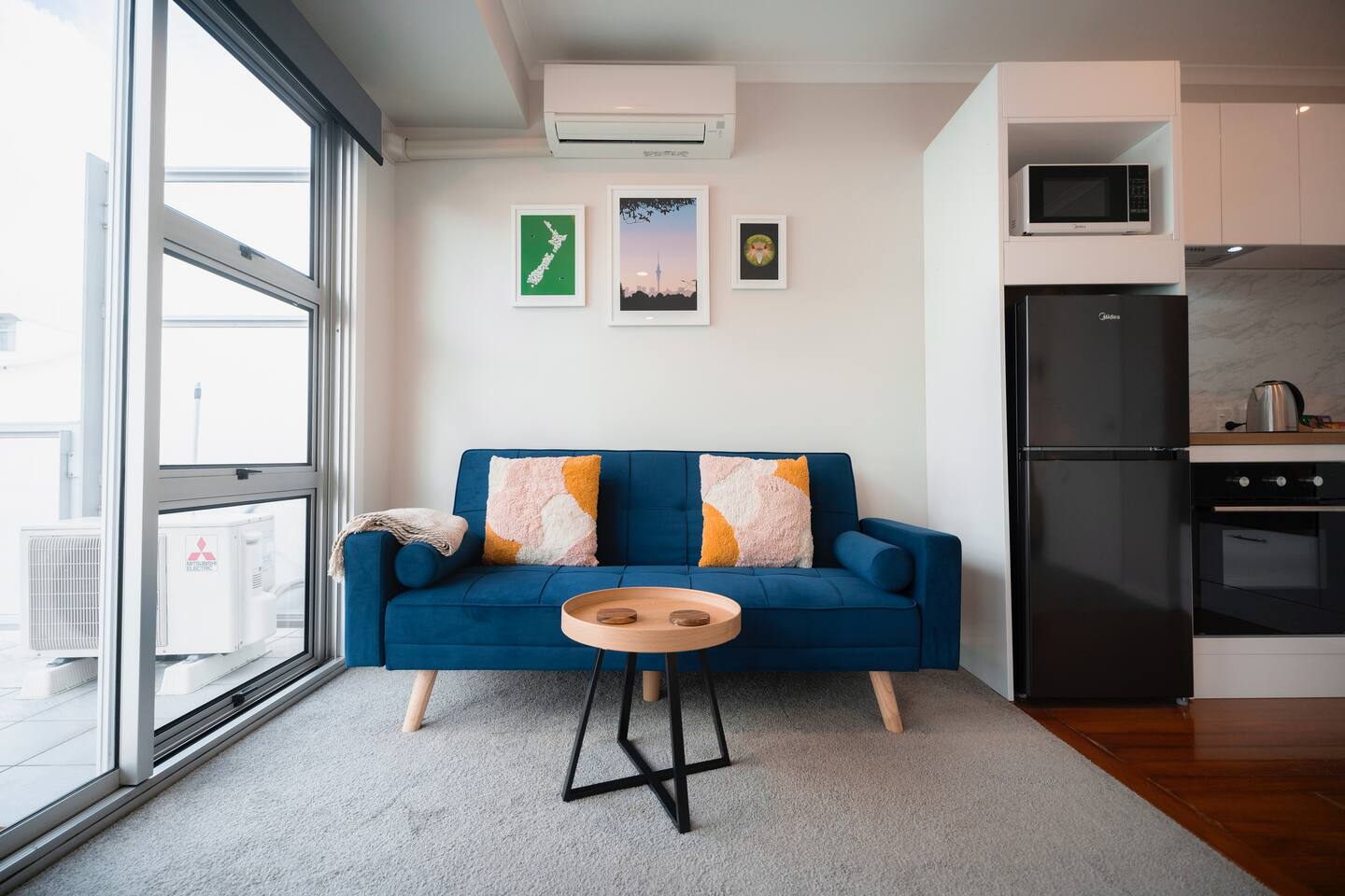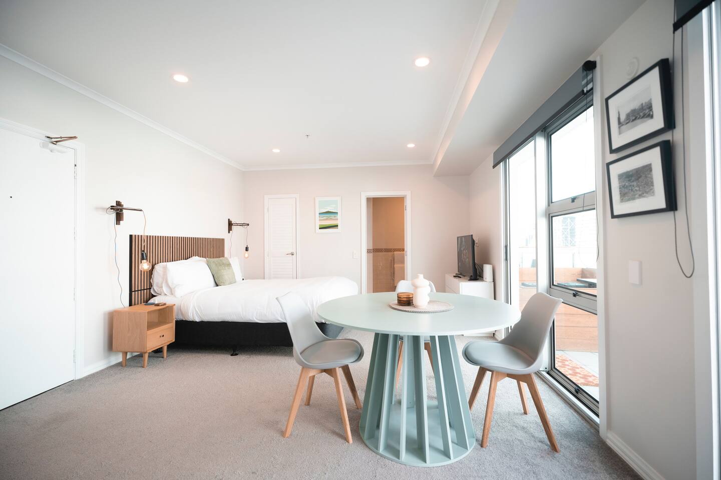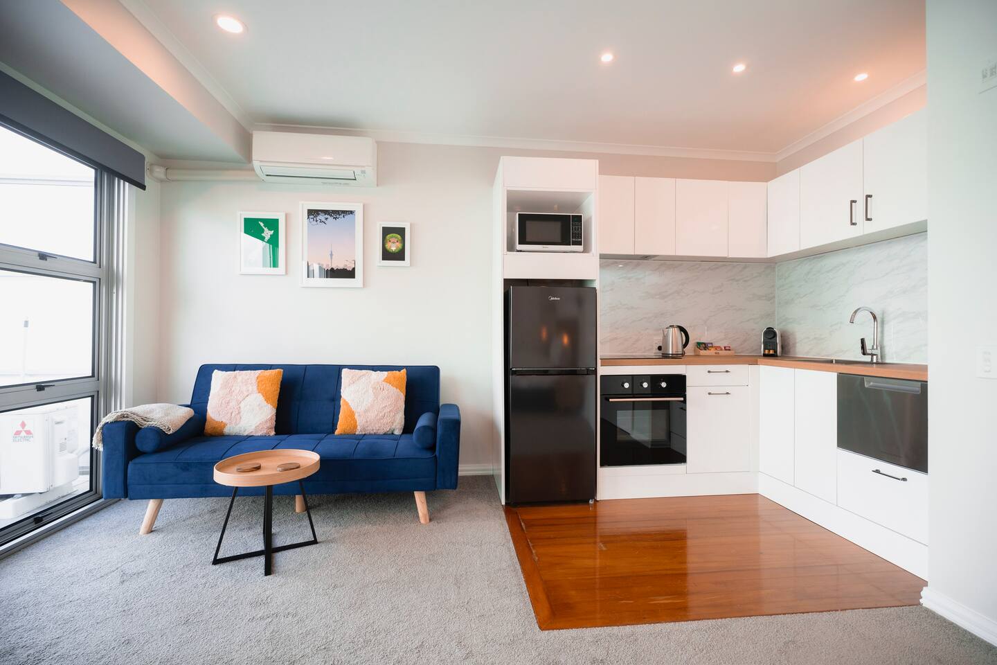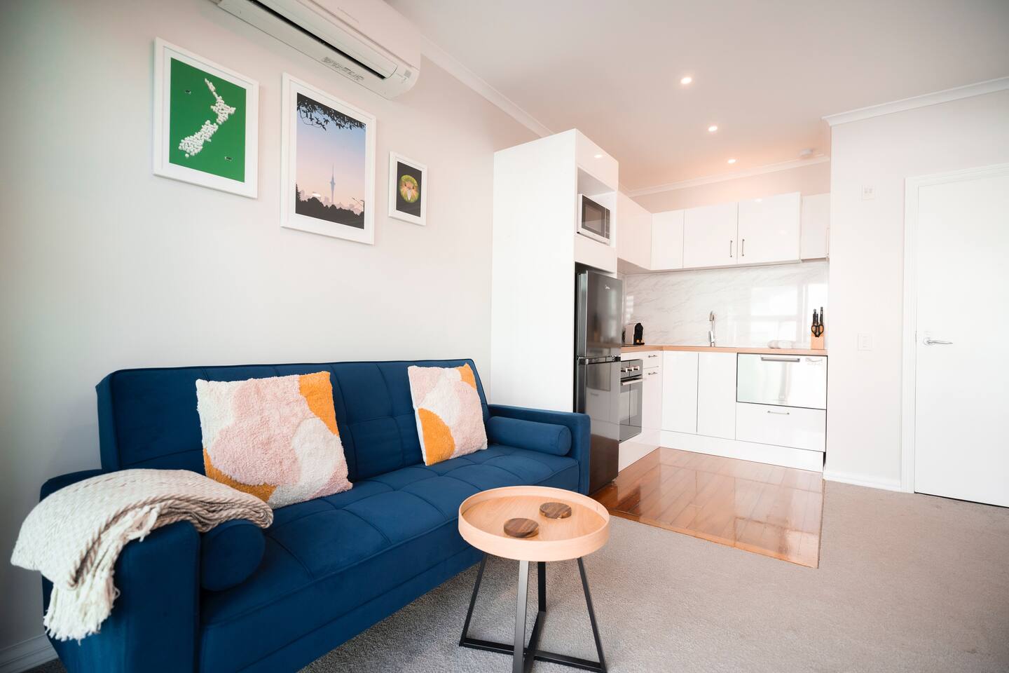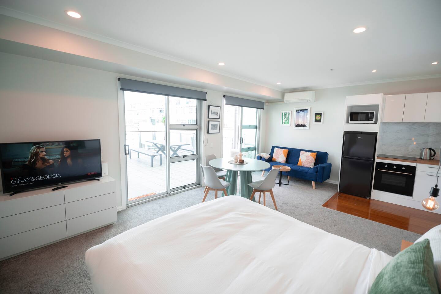 Less than a 5 minute walk to Britomart and Queen Street, this is a great base if you're visiting Auckland and want to be close to transport, shopping & restaurants. Compliment a romantic getaway with the outdoor fire pit whilst soaking in the harbour and city skyline. Located in the entertainment and tourist districts of Auckland with prime bars, restaurants and cafes in close proximity. In short, the apartment has; * Harbour and city views from the large private terrace * View of the SkyTower from your bed * Unlimited fast wifi internet * Unlimited on demand movies and TV shows from Netflix * 43" Smart TV * Air Conditioning (hot and cold) * Fully furnished kitchen including DeLonghi appliances, Nespresso machine, oven, dishwasher, fridge/freezer and microwave * Shower * Premium Egyptian cotton bathroom towels * Bed linen and duvets * Washing machine and dryer * Outdoor fire pit * Highly secure building; swipe card required for access to the lobby and lifts. BEDROOM Is spacious with a comfy queen sized bed with luxurious Egyptian cotton sheets and linen duvet. In your wardrobe you'll find relaxing waffle robes to enjoy during your stay, lots of hanging space for your clothes and the ironing board & iron. Each bedside table has a wireless phone charger. Complementary laundry powder, milk, premium tea & coffee are provided.